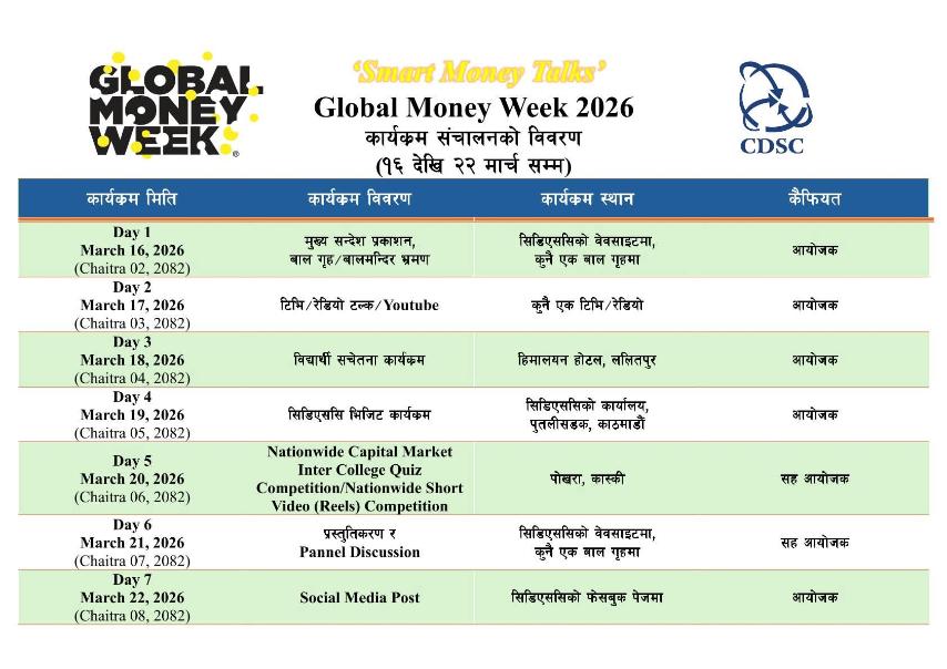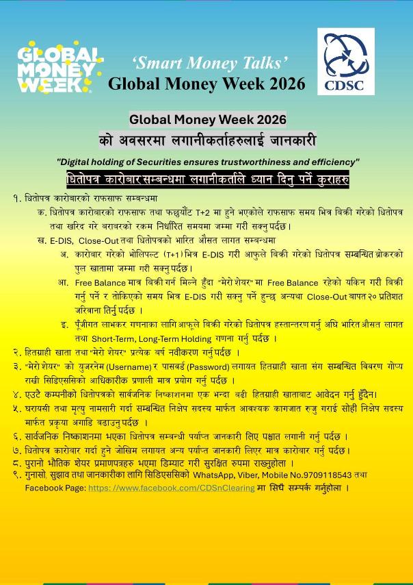 Global Money Week 2026 को अवसरमा लगानीकर्ताहरुलाई जानकारी !