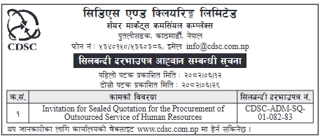 Invitation for Sealed Quotation for the Procurement of Outsourced Service of Human Resources